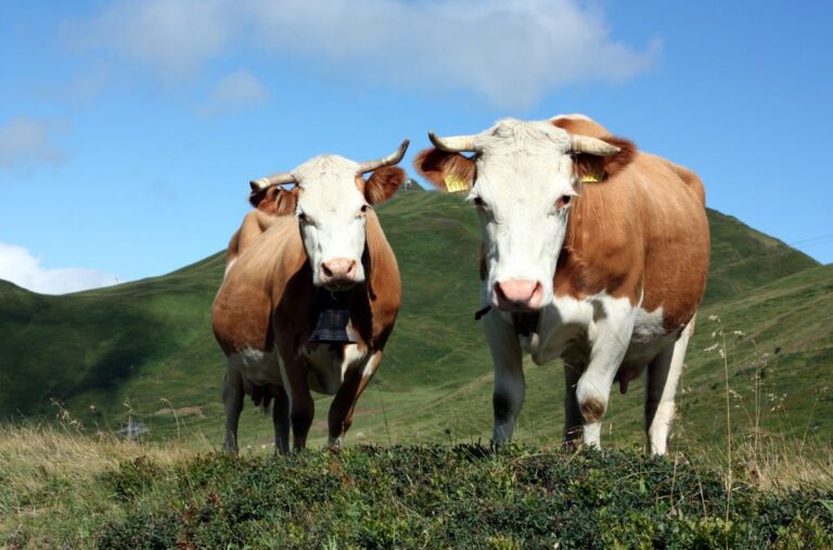 Die stolzen Hinterwälder Rinder sind eine kleine, gefleckte Rinderrasse, von der Restbestände im südlichen Schwarzwald überlebten. Sie gelten als robuste, wenig krankheitsanfällige und besonders langlebige Milchoder Mutterkühe. Mit ihrem geringen Gewicht und den grossen Klauen fühlen sie sich sowohl in steilen Hängen als auch auf nassen, flachen Weiden wohl. Diese Eigenschaften machen sie für die Schweizer Bergwelt besonders wertvoll. -